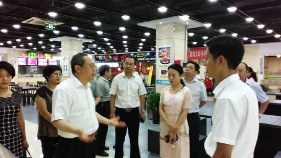 7月29日下午,省食藥監局高懷荃副局長率食品消費處、食品監督所主要負責同志在淮北市副市長王莉莉,市政府副秘書長周杰陪同下蒞臨鼎盛國際購物中心督查指導餐飲消費環節食品安全監管工作,鼎盛商管公司董事長李杰、九極美食城及卡旺卡奶茶負責人陪同。